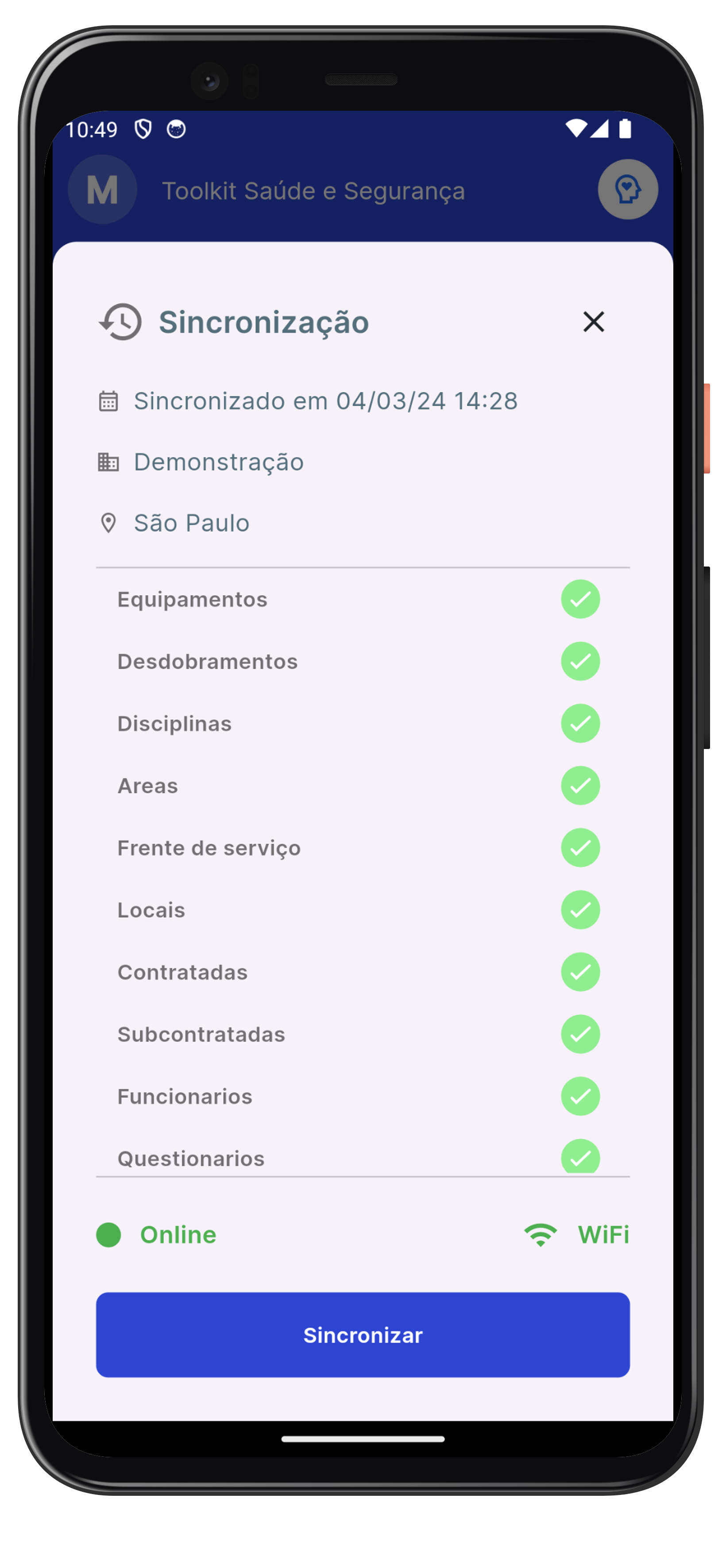 Nosso app mobile é capaz de fazer o download de dados para a atuação on-site onde não há serviço de rede. Atualizações de relatórios e demais modificações serão realizados com o retorno da rede.
